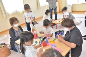 その後は、遊戯室で折り紙やすごろく、トランプ、保育室では「トントン相撲」を一緒に作って勝負したり、白熱な戦いが繰り広げられていました‼
