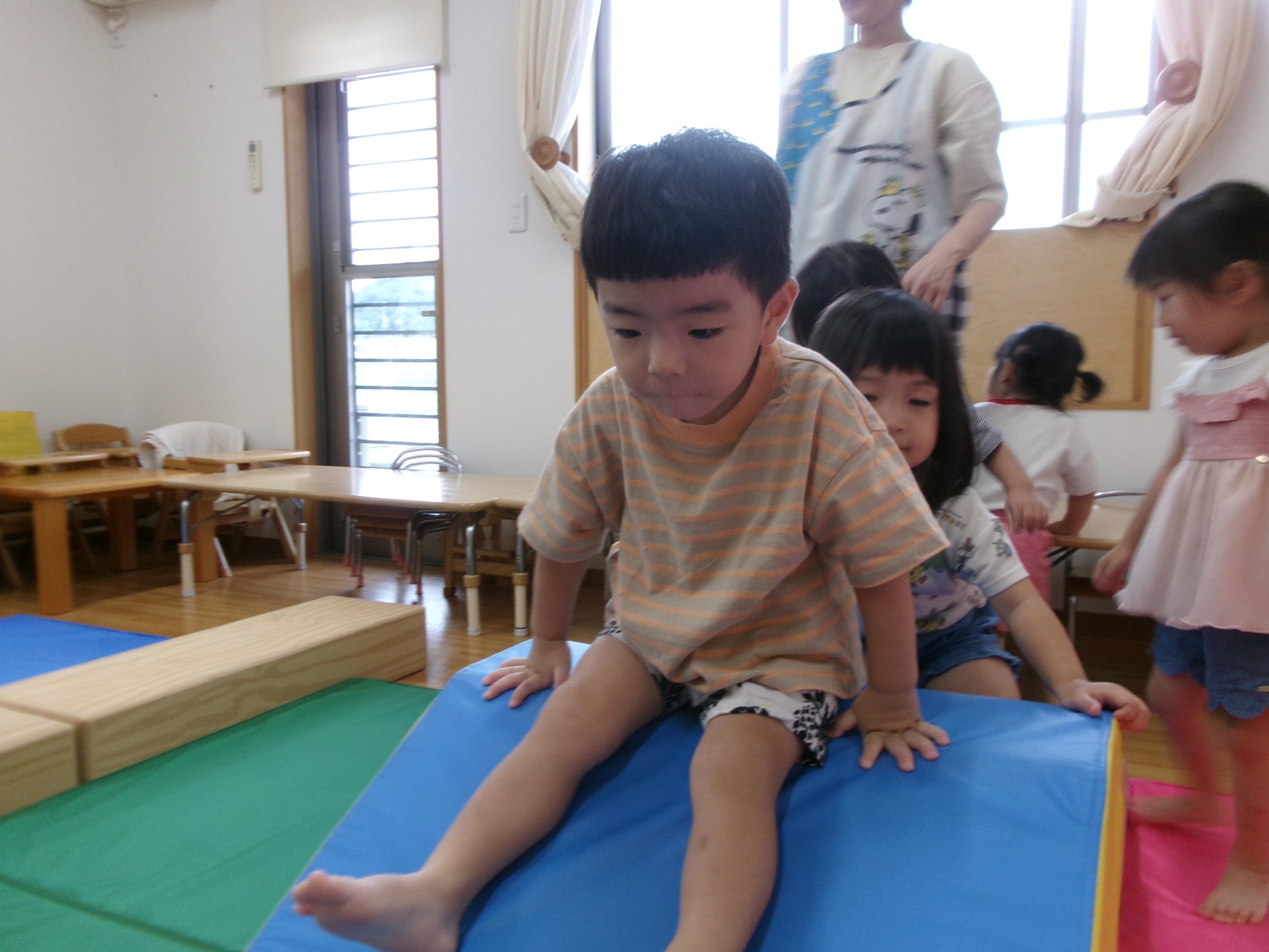 室内用すべり台やトンネルなど、たくさん体を動かして