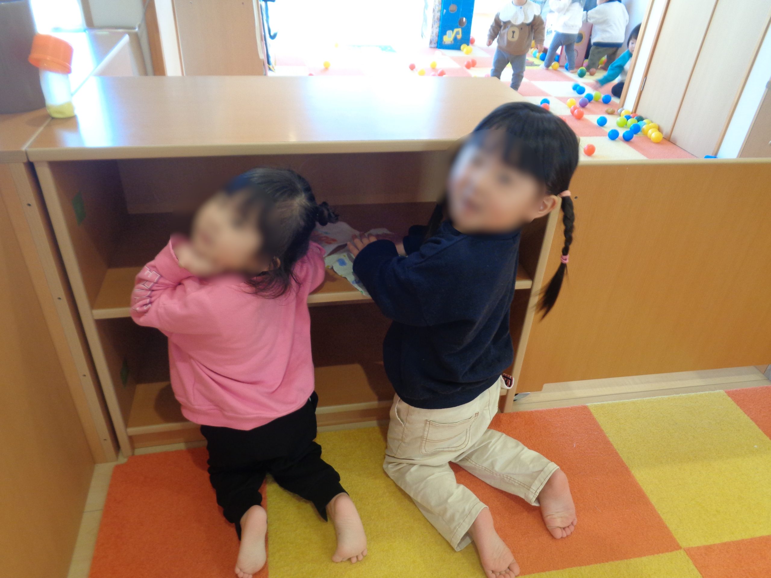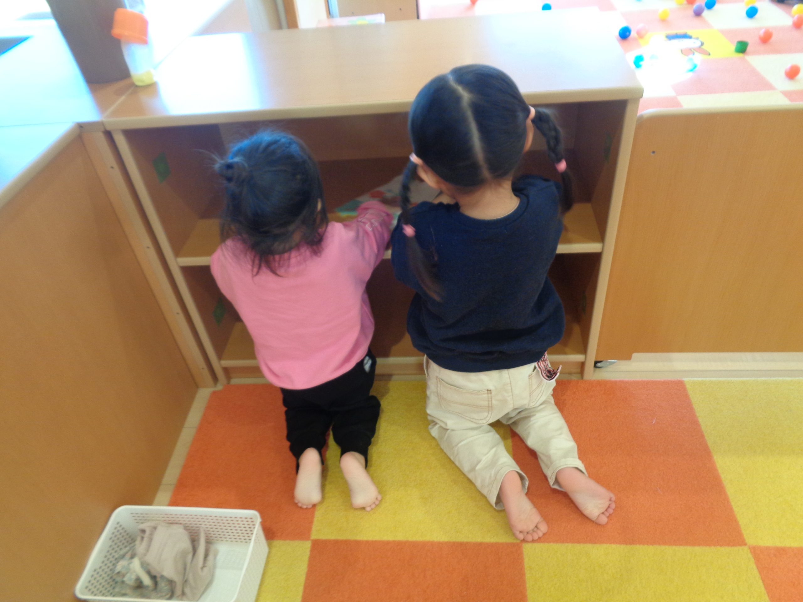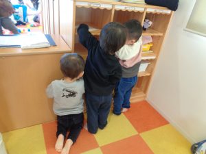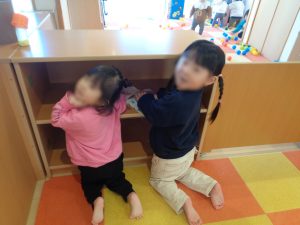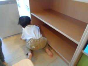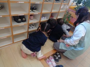 りす組さんは、自分のロッカーや靴箱、パジャマを入れている棚などを掃除しました!