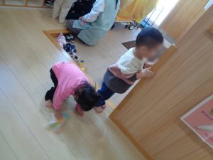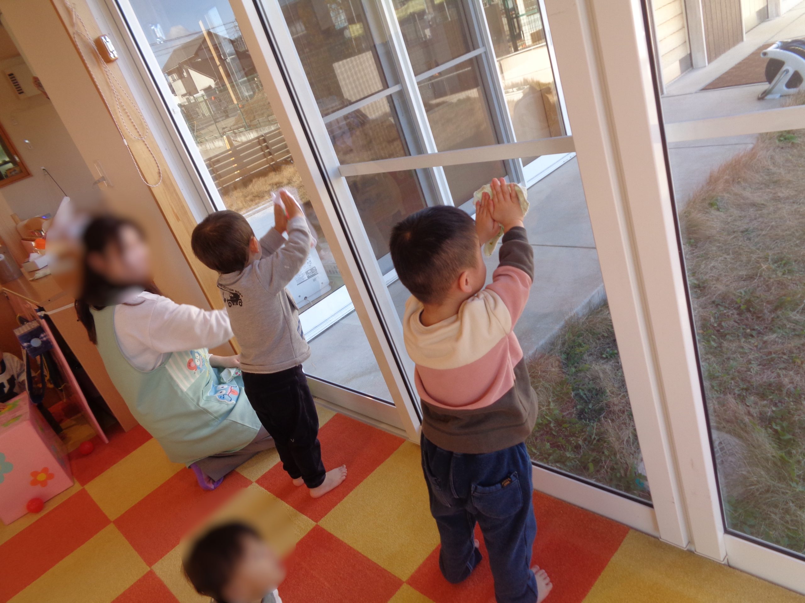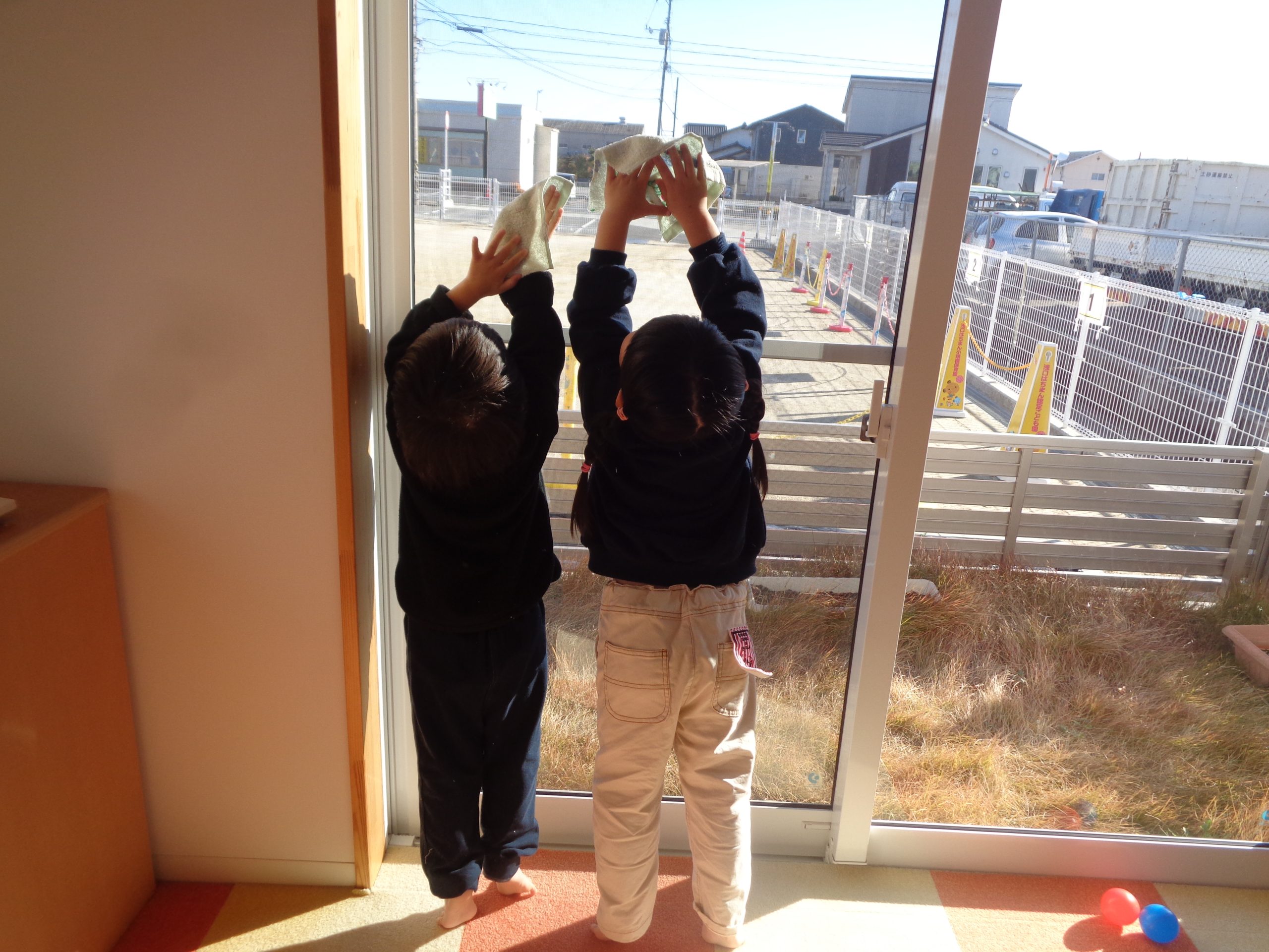 どこまで高く拭けるかな?、せーのでふきふきしよう!など、みんなで一緒に楽しんでいました✨