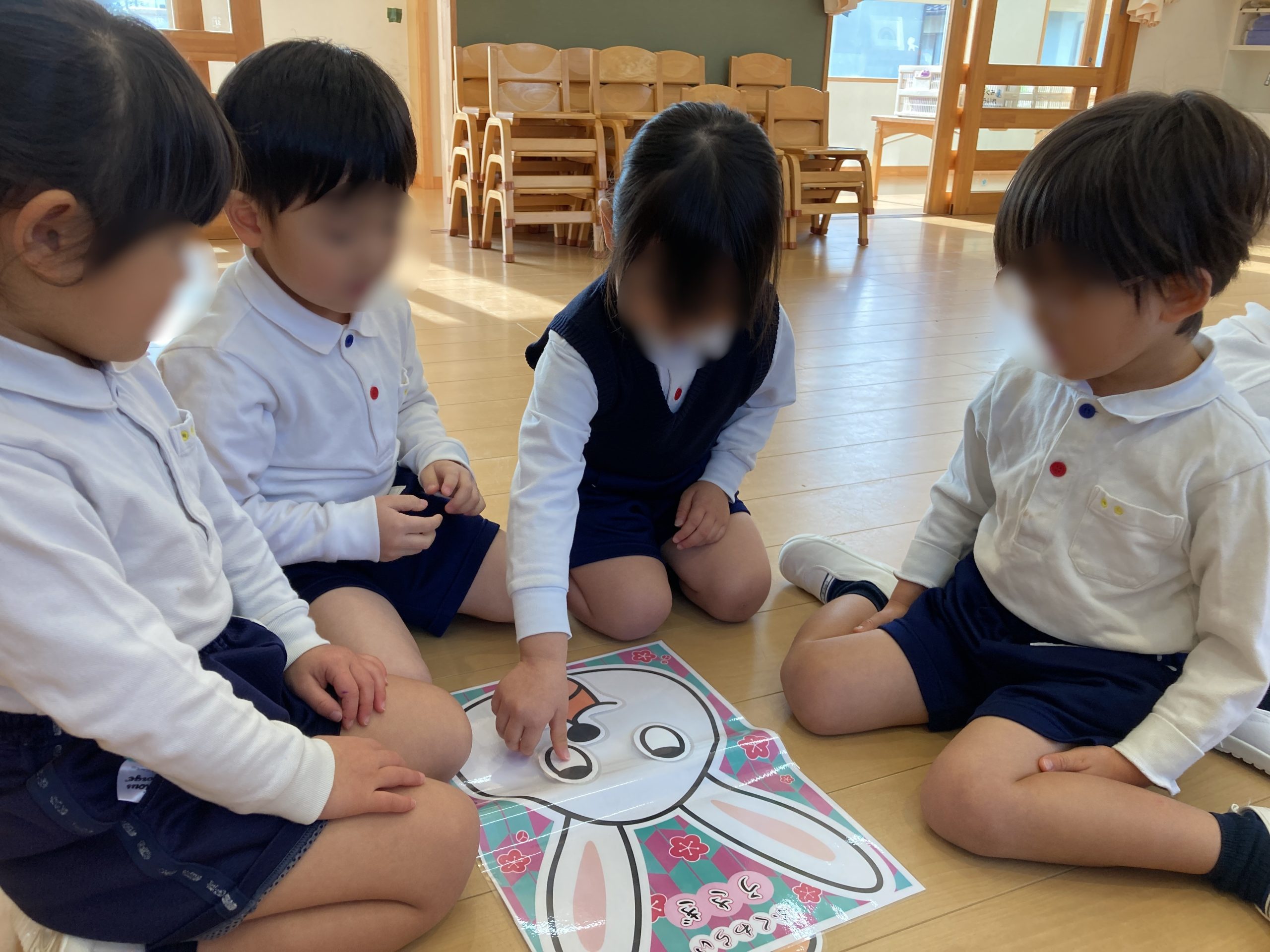 他にも、カルタやこま、福笑いをしたりして、お正月遊びを楽しんでいました!